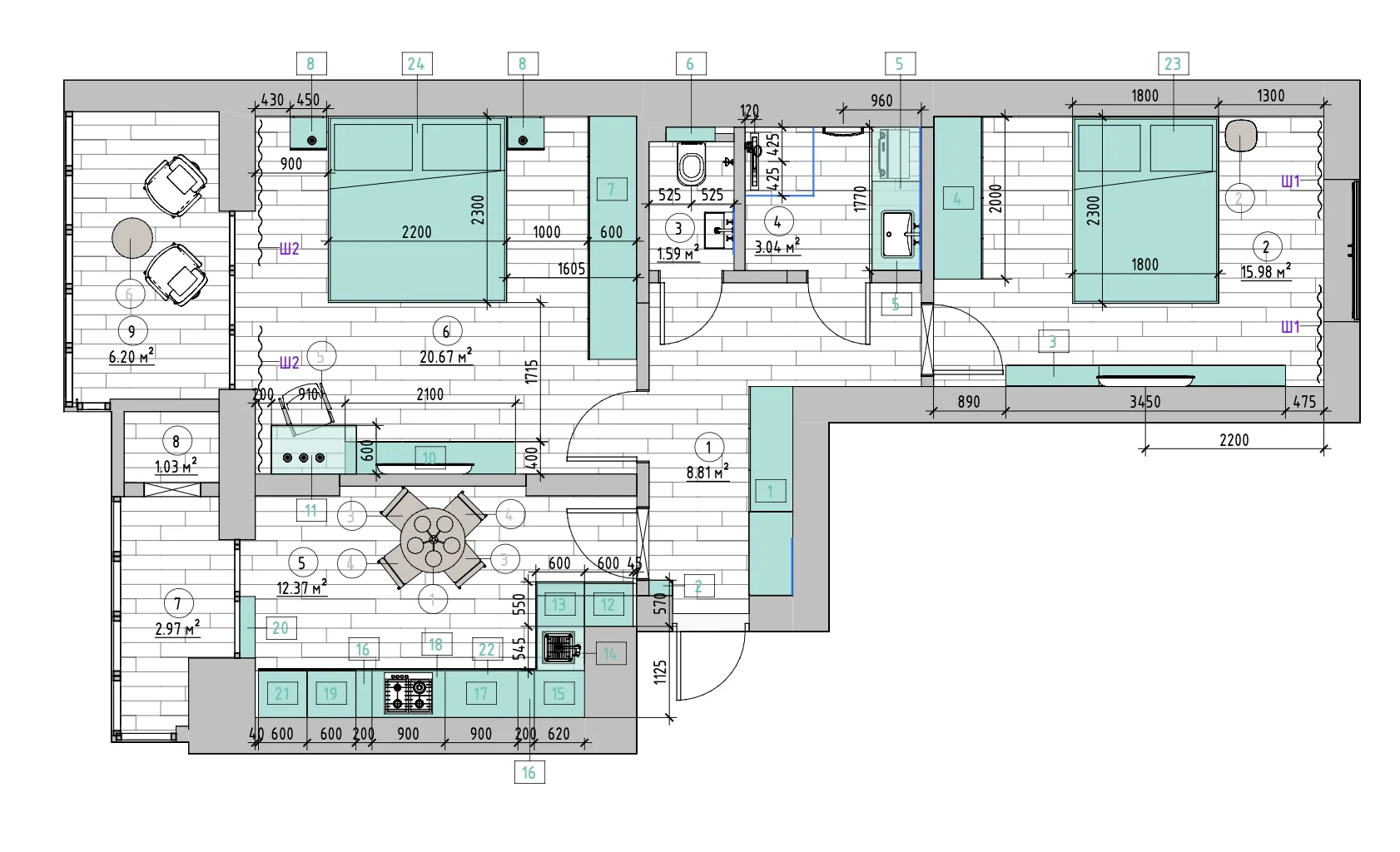 - розташування розеток і вмикачів