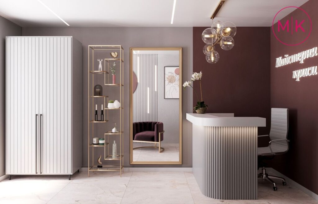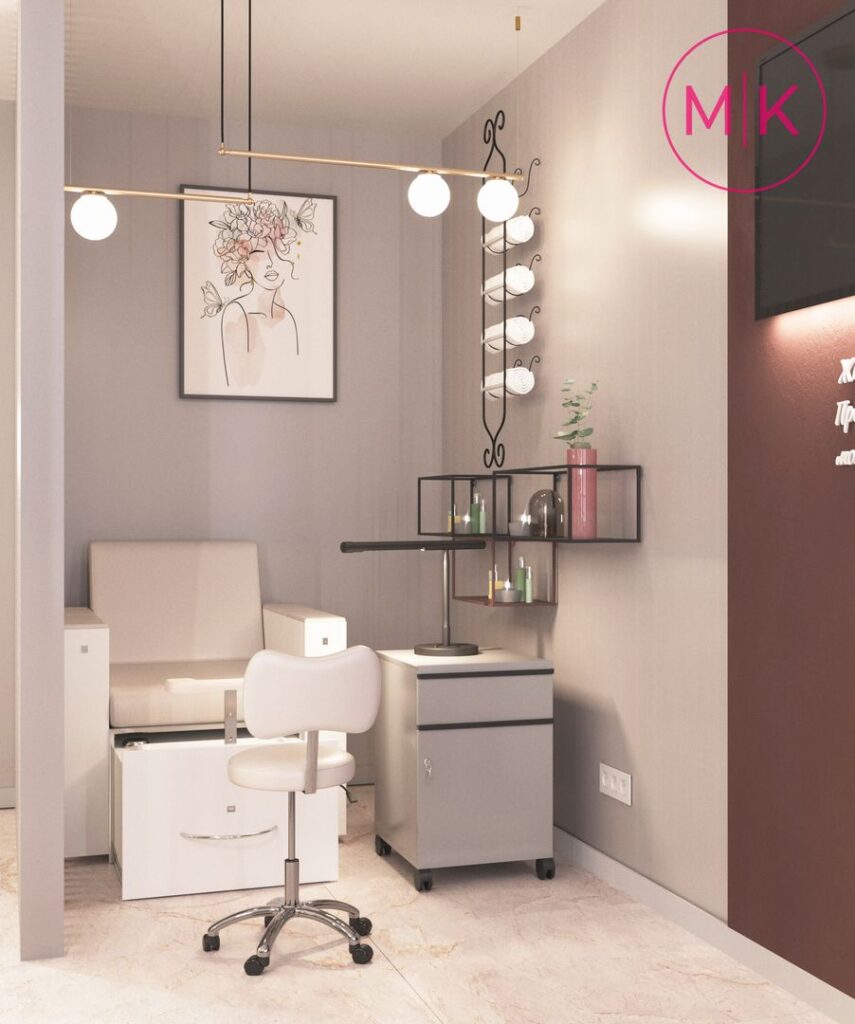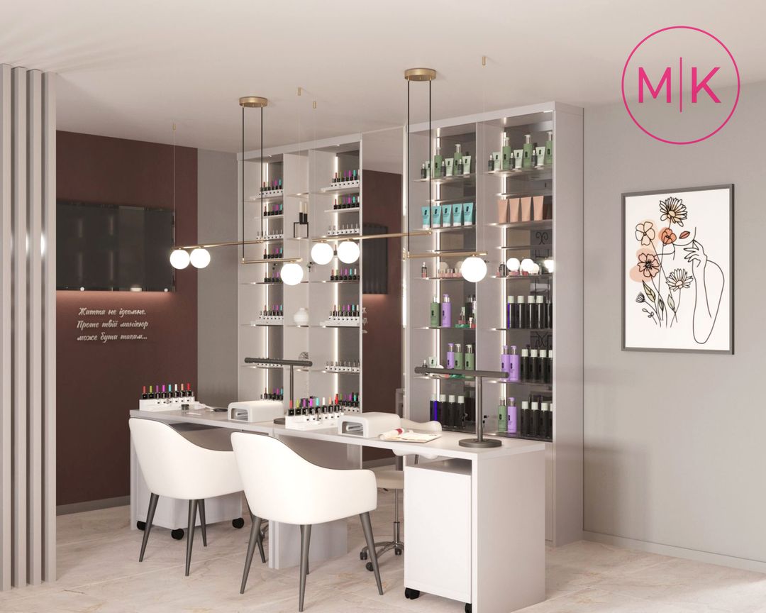 Дизайн проект інтер’єру салону краси у місті Тернопіль, загальною площею 69 кв.м. виконаний у сучасному стилі модерн.